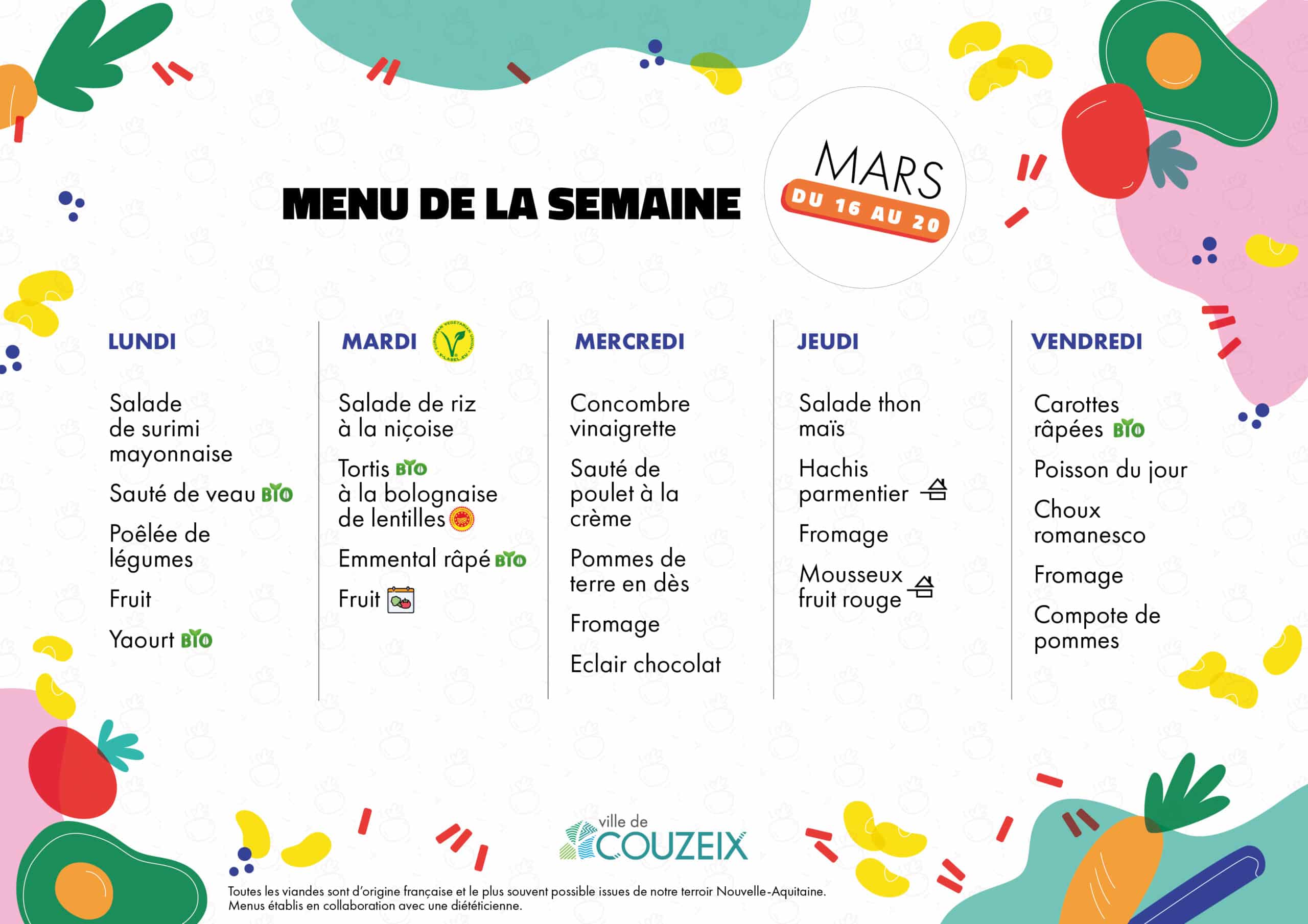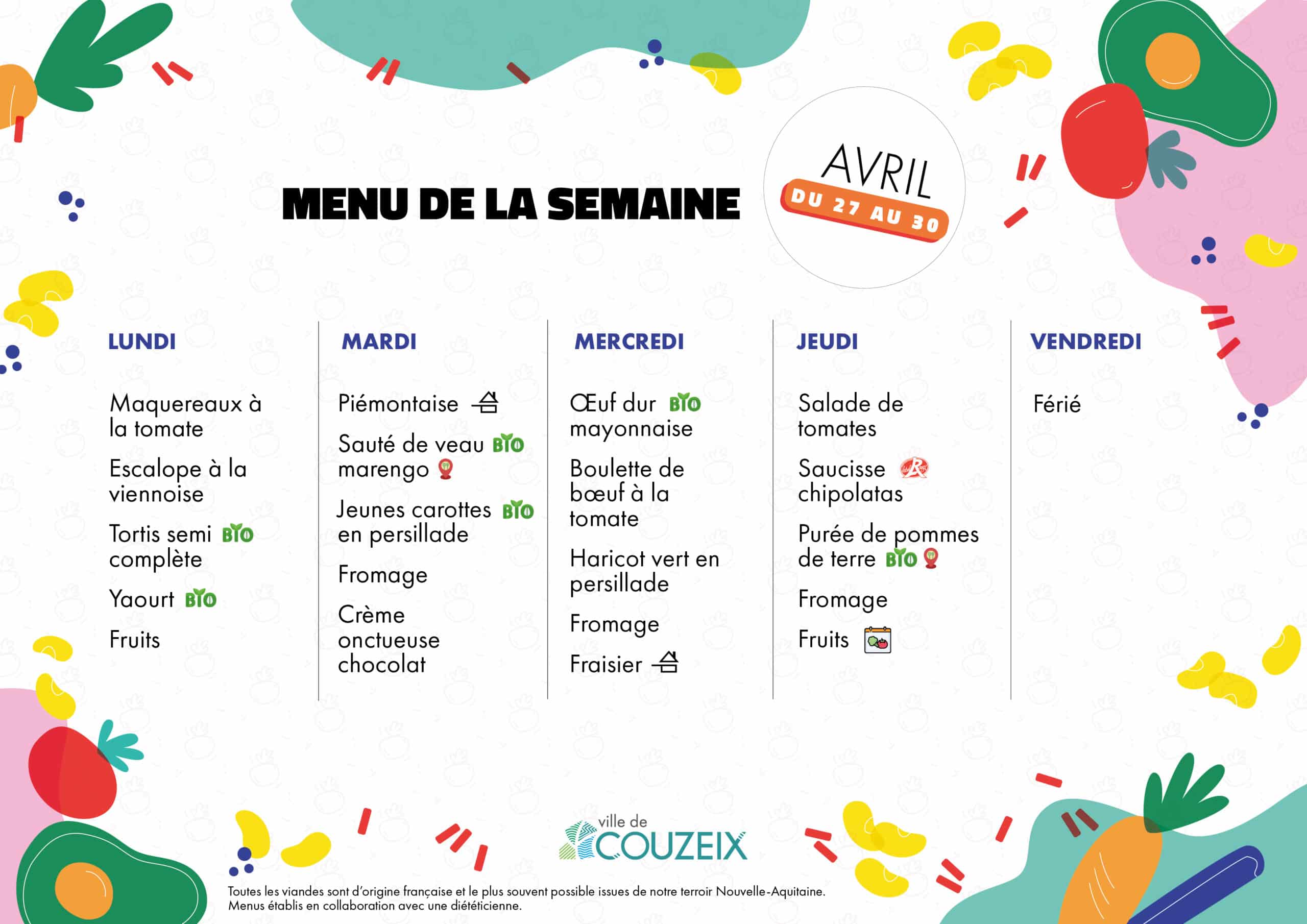 Les menus sont élaborés en collaboration avec une diététicienne, afin de garantir l’équilibre nutritionnel des repas et le respect des recommandations alimentaires en vigueur.